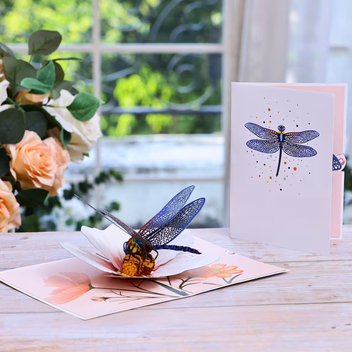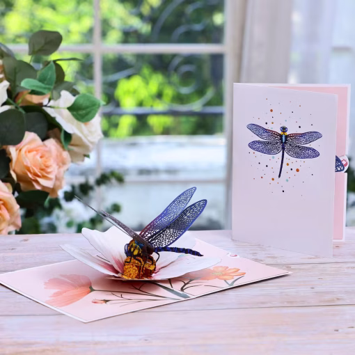 Unipop Dragonfly & Cosmos Flower Pop Up Card, Birthday Card for Women, Mothers Day Card, Valentines Day Card, Pop Up Birthday Card